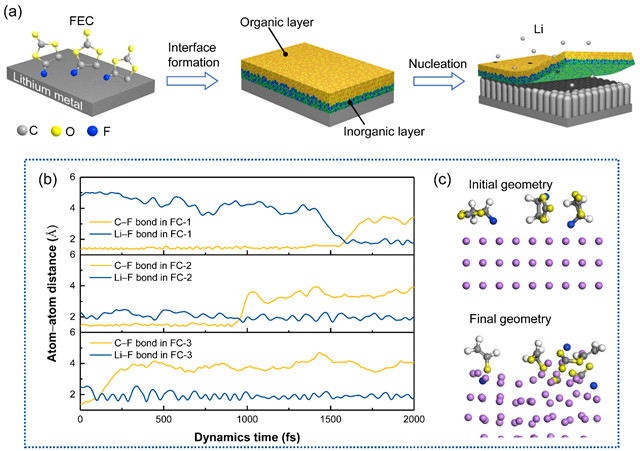 高安全性、高能量密度、长寿命电池是推动能源高效利用的关键。采用具有极高的理论比容量(3860 mAh g?1)和最低电极电势(?3.04V vs 标准氢电极)的金属锂电极作为二次电池的负极材料是解决人们对里程焦虑和安全隐患的重要技术路线,也是发展高安全固态电池的关键。然而,金属锂表面在充放电循环中具有较高的化学活性,导致其界面稳定性差,这将导致锂枝晶的生长,电池库伦效率低等问题。充分认识锂离子在金属锂表面的沉积和脱出行为,深入理解锂金属电极界面结构对于锂离子沉积和脱出的影响有着重要意义。